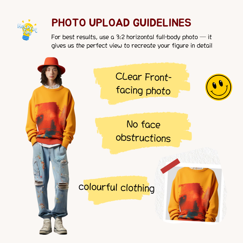 🧡 Tip: The more detailed your outfit, the more vibrant your figurine will be!